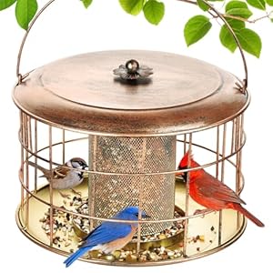 Metal Caged Bird Feeder, Squirrel Proof Bird Feeders for Outdoors Hanging, Wild Bird Feeder for for Small Birds, Squirrel Chew & Weather Resistant, Backyard Gift, Easy to Refill & Clean, 2Lbs