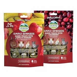 Bundle of Oxbow Simple Rewards Baked Treats for Rabbits, Guinea Pigs, Chinchillas, and Small Pet (Apples & Bananas, 3 oz) + Oxbow Simple Rewards Baked Treats (Cranberry, 3 oz)