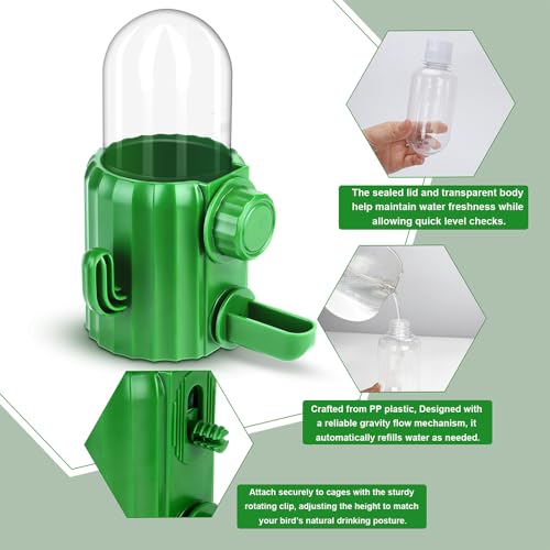 Cheerful Cactus Design, Built for Bird Cages: This 250ml (8.45 fl oz) cactus-shaped dispenser adds vibrant charm to cages while providing reliable hydration for parakeets, cockatiels, budgies, and other small birds. Its compact size fits seamlessly in most setups.