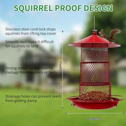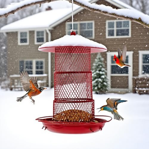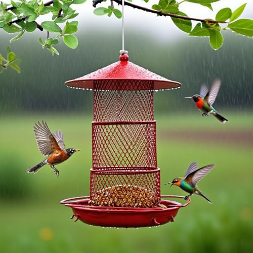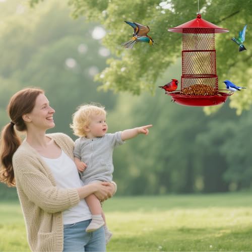 【Attracts Birds & Ready to Use】 The vibrant red color is scientifically proven to be highly visible and attractive to cardinals, finches, and other beautiful songbirds. Your metal bird feeder for cardinals arrives fully assembled – just hang it, fill it, and enjoy the show!