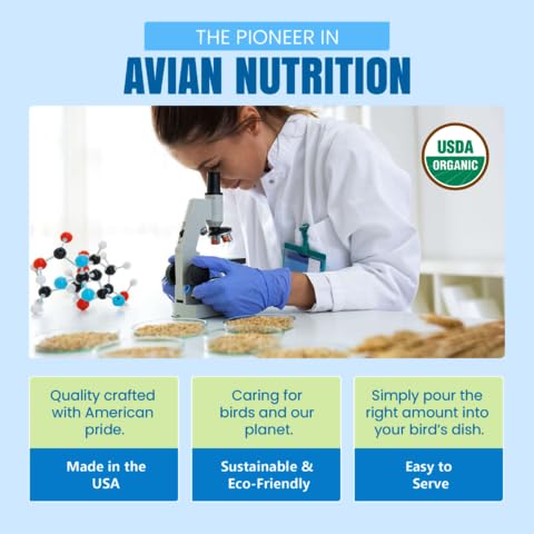 ORGANIC GOODNESS IN EVERY BITE No fillers, no preservatives—just pure, premium nutrition. Keep your adult pet birds healthy and thriving with the leading premium organic pellets they deserve.
