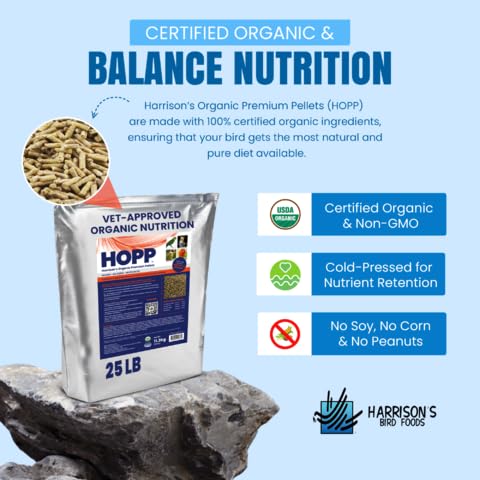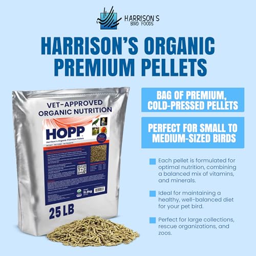 Harrison’s Bird Foods HOPP Premium Pellets – Organic, Nutritionally Balanced Food for Small to Medium Pet Birds, Cold-Pressed, Low Fat, Vet-Developed, 25LB