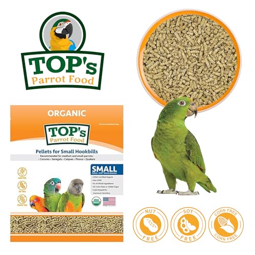 TOP’s Parrot Food Bird Pellets for Small Hookbills – Non-GMO, Peanut Soy & Corn Free, USDA Organic Certified (4lbs)