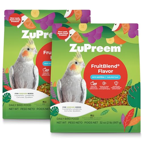 ZuPreem FruitBlend Flavor Pellets Bird Food for Medium Birds, 2 lb (Pack of 2) – Daily Blend Made in USA for Cockatiels, Quakers, Lovebirds, Small Conures
