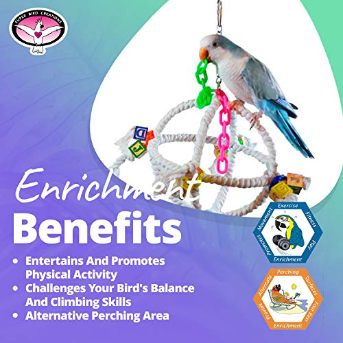 SUITABLE FOR SMALL & MEDIUM BIRDS: Tailored for Parrotlets, Parakeets, Cockatiels, Lovebirds, and similar sizes, the Super Bird Creations Orbiter Bird Toy is the ideal size for a range of small to medium birds. It provides the perfect play area for your feathered companions.