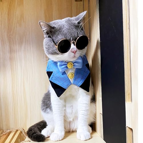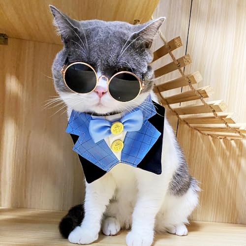 Dog Tuxedo Formal Cat Birthday Costume Cat Dog Formal Wedding Attire (Blue)