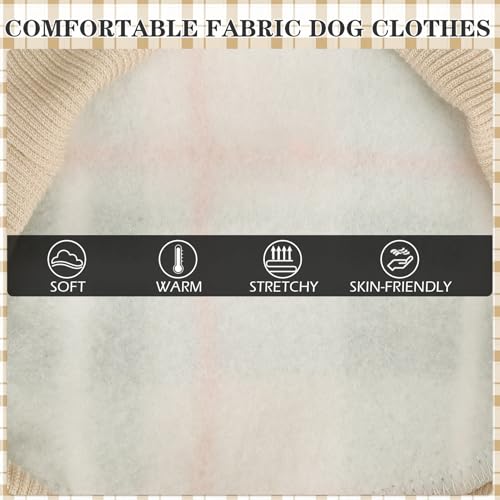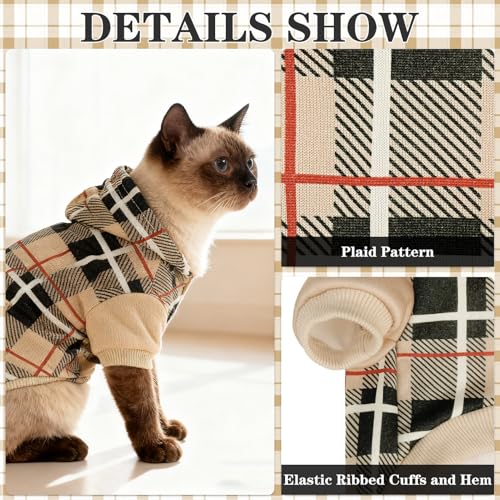 EXPAWLORER Plaid Cat Hoodie – British Style Warm Cat Sweater Shirt with Leash Hole,Pet Clothes Outfits,Winter Coat Apparel for Puppy Cats Girl Boy-Kitten Apparel,Beige M