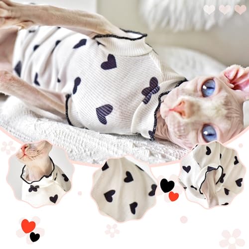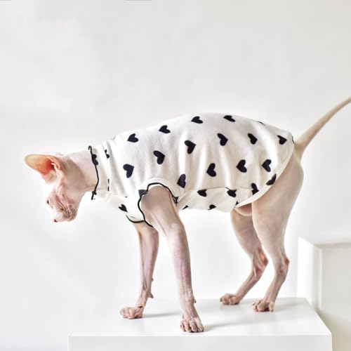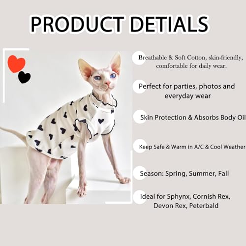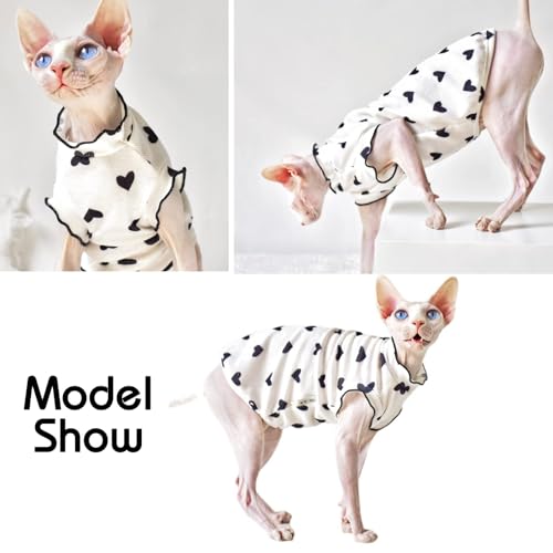 QBLEEV Sphynx Cat Clothes – Breathable Cotton Cat Shirts for Hairless Cats, Summer Pet Apparel with Heart Pattern & Ruffle Sleeves, Lightweight Cat Vest for Indoor/Outdoor Wear
