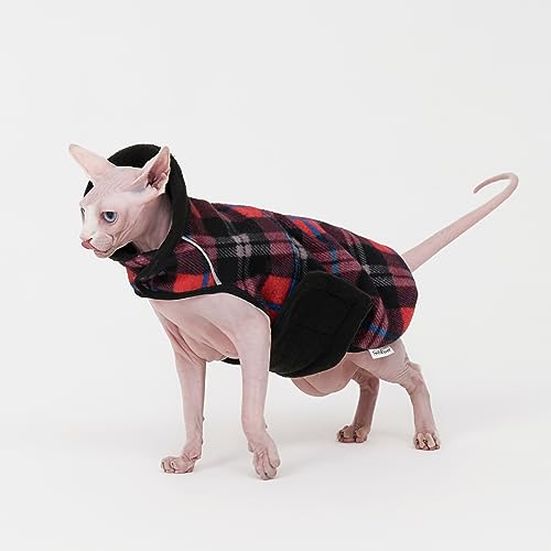 Sphynx Cat Windproof Turtleneck Jacket, Cat Puppy Warm Fleece Hoodie Fall and Winter,Easy to Wear Cat Coat with Velcro,Neck and Chest Adjustable Sweater