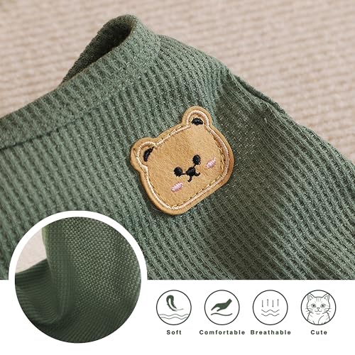 Waffle Knit Cat & Dog T Shirt for Small Dogs, Stretchable Puppy Shirt for Sphynx Cats & Small Breeds, Pet Clothes | Breathable Summer/Winter Apparel for Newborn(Green Medium)