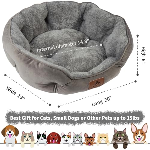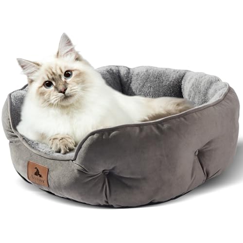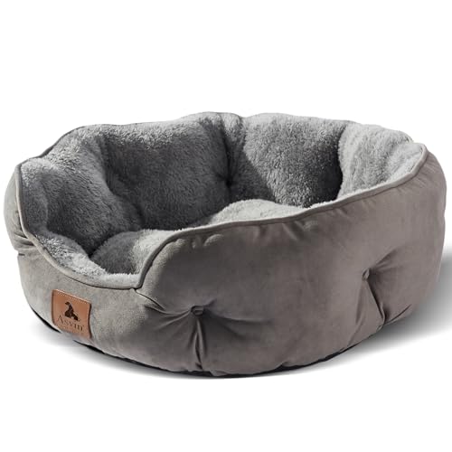 Asvin Small Dog Bed for Small Dogs, Cat Beds for Indoor Cats, Pet Bed for Puppy and Kitty, Extra Soft & Machine Washable with Anti-Slip & Water-Resistant Oxford Bottom, Grey, 20 inches
