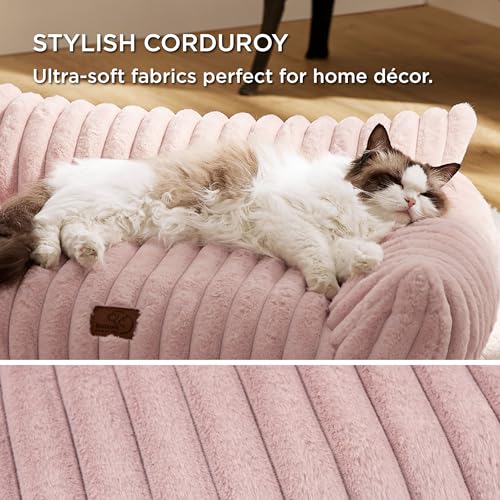 Bedsure ComfyFleece™ Cute Cat Couch for Pets – As Seen on TV on Good Day New York, Fuzzy Cats beds for Indoor Cats with Removable Washable Cover, Supportive Pet Sofa, 24inch, Blush Pink