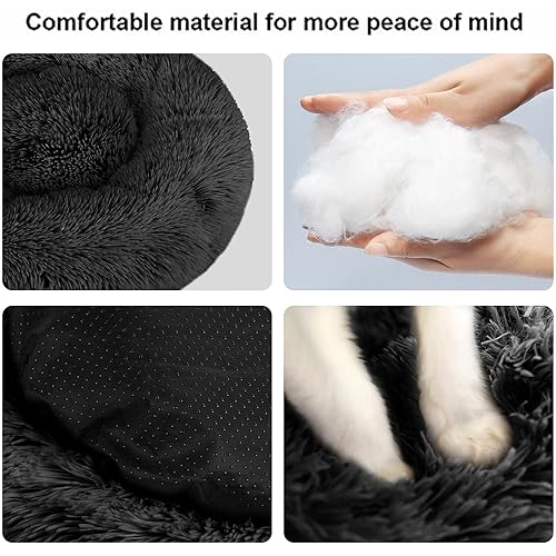 Cat beds or dog beds are donut design, The raised edges create comfortable sense of security, while providing head and neck support to help kitten or puppy calm down faster, Get a more comfortable and stable sleep