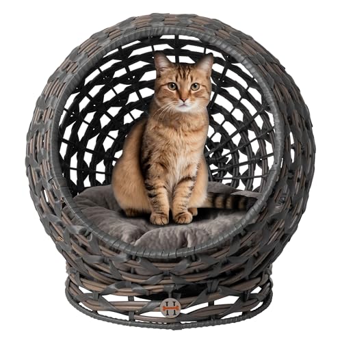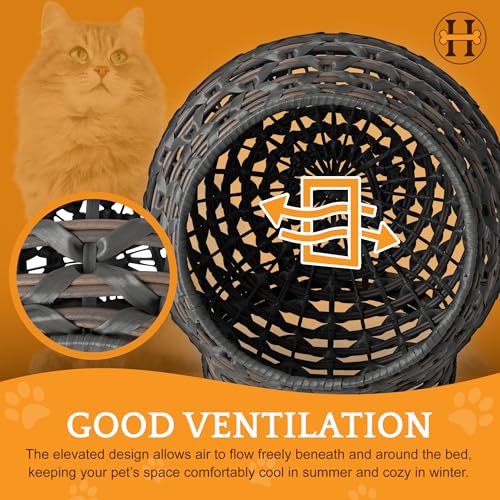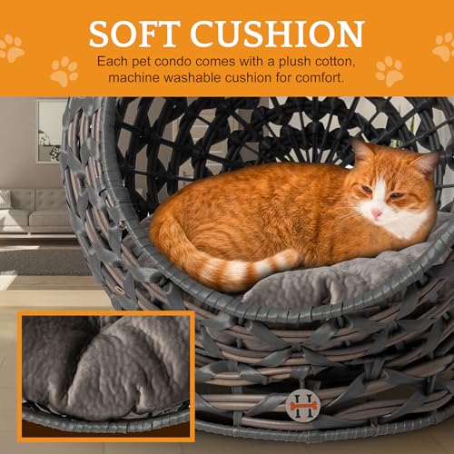 Huntley Equestrian Pet Rattan Cat Bed Condo, Elevated with Round Cushion, Grey (02196)
