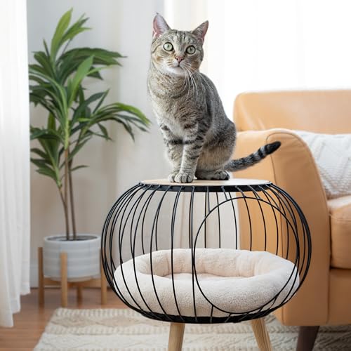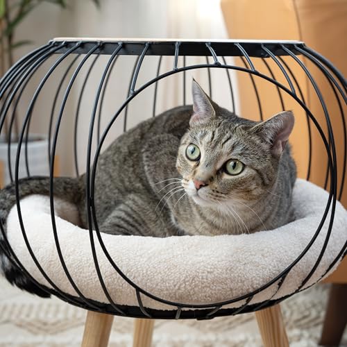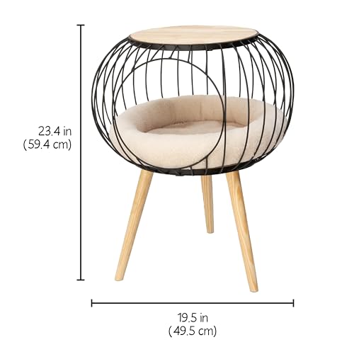 The Kitty City Cat Lounge brings modern elegance to your home while providing a cozy spot for your cat to relax. Made from blonde rubberwood and a coated metal frame, this piece features a comfortable Sherpa pillow and a clean, modern aesthetic to fit into any home decor.