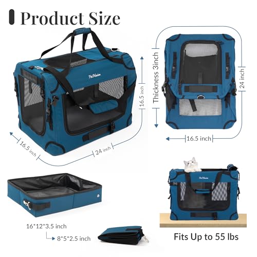 Large Capacity and Size: Measuring 24” x 16.5” x 16.5”, this carrier is ideal for medium to large cats, or even multiple cats, with a maximum weight capacity of 55 lbs. The spacious interior meets all your cat’s needs, ensuring they feel comfortable and at ease. This soft sided carrier with litter box acts like a mobile home, whether in the bedroom, car, or on the go