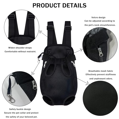 Pet Carrier Backpack, Adjustable Pet Front Carriers for Small Medium Dogs Cats 5-18 Lbs, Legs Out, Dog Cat Carrier Backpack for Hiking,Camping,Traveling,Cycling (Black,Large(Fit:10-18lb))