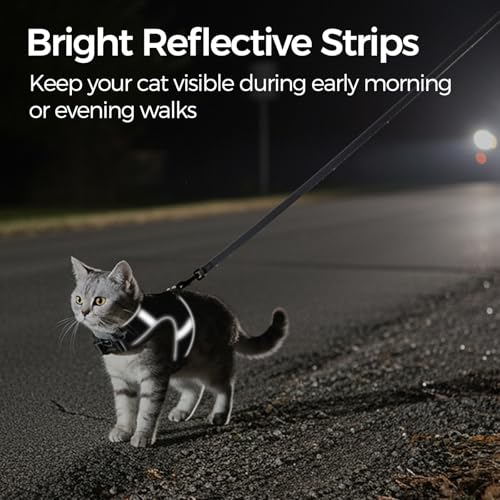 360° REFLECTIVE STRIPS: High-visibility reflective trim on all sides keeps your cat visible during early morning or evening walks, making it an ideal travel cat harness for any adventure.