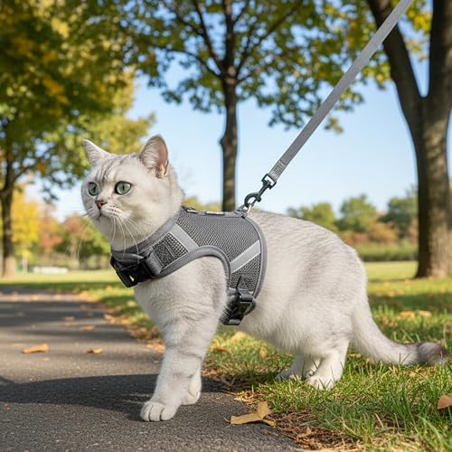 Cat Harness and Leash Escape Proof Kitten Harness Cat Leash for Walking Travel Service Cat Vest, Grey, X-Large
