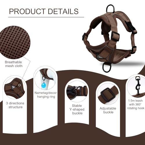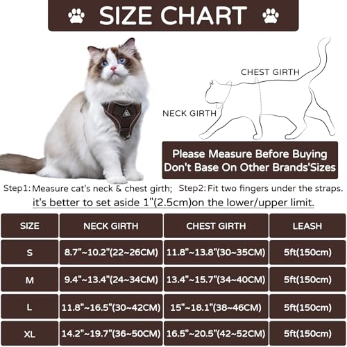 Cat Harness and Leash Set for Large Cat Small Dog Puppy, Escape Proof Adjustable Vest with Lead for Outdoor Walking, Soft Breathable Mesh Jacket with Reflective Strips for Dark Night, L Brown