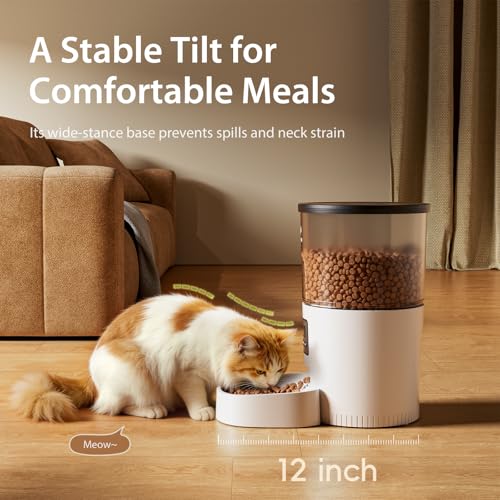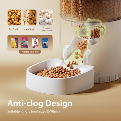 Easy to Use & Maintain: IMIPAW Auto Cat Feeder inbuilt LCD screen allows quick setup and press both UP & DOWN together to manually dispense 1 portion; Proper angle so that food will not accumulate in the food outlet, and the cat food tray are removable for cleaning. The secure lid lock design prevents pets from getting food