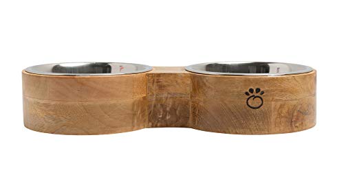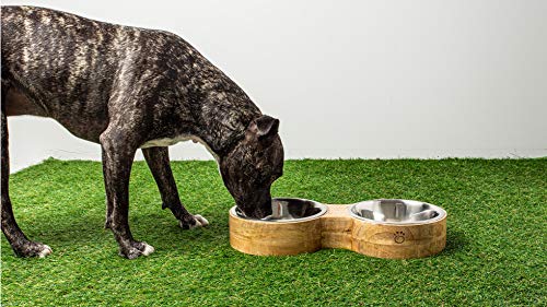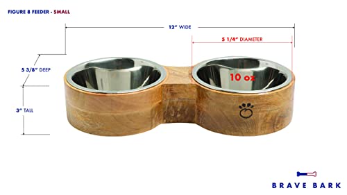 Luxury Elevated Dog Bowl Set – Mango Wood Stand with 2 Stainless Steel Food & Water Bowls – Raised Pet Feeder with Non-Slip Base, Modern Design for All Dog Sizes, Small 10oz