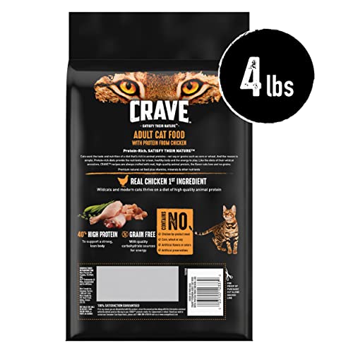 CRAVE Grain Free Adult High Protein Natural Dry Cat Food with Protein from Chicken, 4 lb. Bag