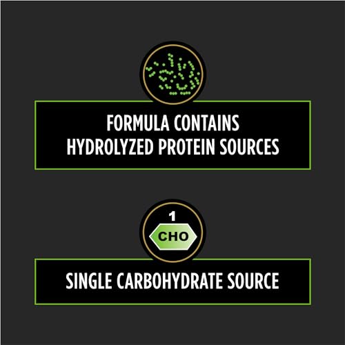 Hydrolyzed protein cat food includes a single carbohydrate source
