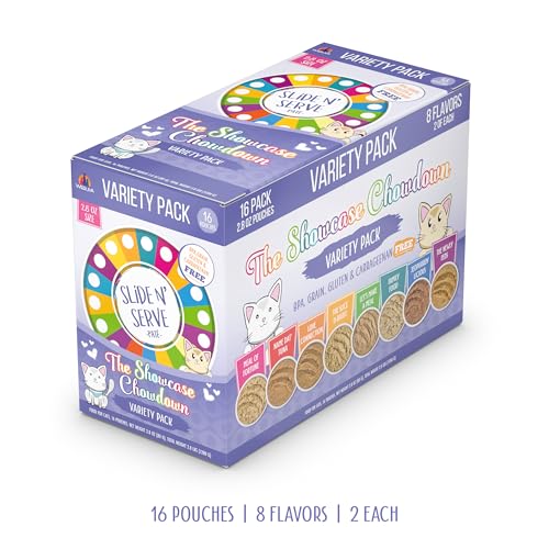 Weruva Slide N’ Serve Paté Wet Cat Food, The Showcase Chowdown Variety Pack, 2.8oz Pouch, Pack of 16