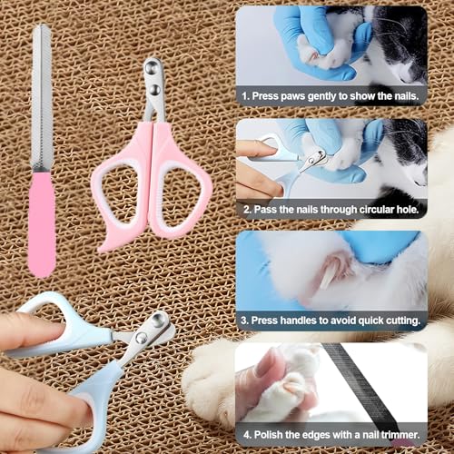 ❤【Ergonomic TPU Handle & Circular Cut Hole Nail Clipper】This cat nail clipper and trimmer set is made of premium high-strength stainless steel, making it more durabe and sharp. Featured a cushioned and non-slip TPU handle, the pet nail clipper can give you a comfort and prevent painful accidents. The circular hole design can easily help complete the cutting, and the trimmer can polish pet nail.
