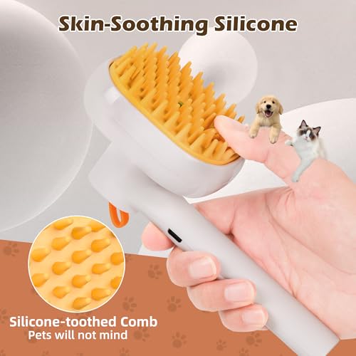【Silicone Steam Brush】This Rechargeable pet steam brush tackles static and flyaway hair with its gentle mist system, keeping your home cleaner while significantly reducing the need for frequent baths—simply fill its tank with water or grooming solutions.