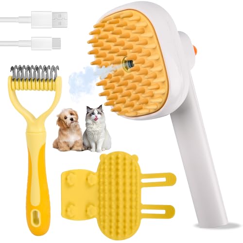 【Pet Steam Brush Kit】 Your All-in-One Solution for Pet Hair Care! Includes: Silicone Steam Brush — Promotes a glossy coat & removes loose hair. Undercoat Rake — Effectively eliminates trapped undercoat. Self-Grooming Massage Brush — Perfect for cats to scratch against or enjoy bath-time massage.