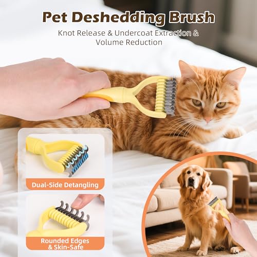【Double-Sided Dematting Comb】This comb features a gentle, skin-friendly rounded-edge design that safely glides through fur without irritation, while its 11 stainless steel teeth penetrate deep to break up undercoat mats and tangles—promoting healthier coat growth and minimizing shedding.