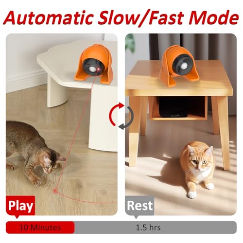 Auto Slow/ Fast Speed Mode – In these 2 Modes of Mdupw automatic interactive cat toy , works 10 minutes then entry standby time, 1.5 Hrs later works 10 minutes again, and so on. You can choose the speed according to the personality of your cats. Pets will have a rest after getting a 10 minutes exercise.