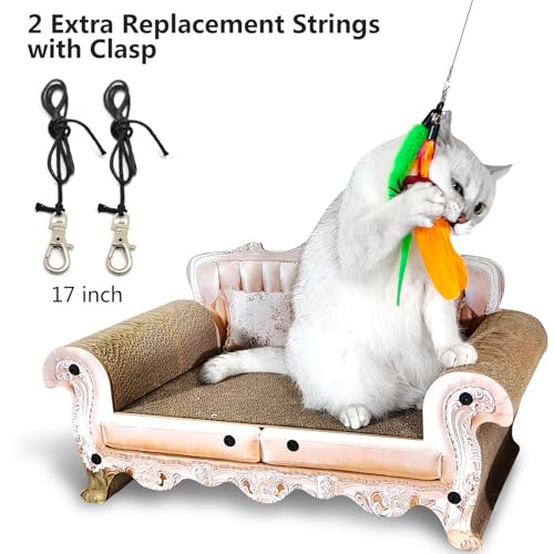【LENGTHY DESIGN FOR MAXIMUM ENGAGEMENT】The four-section wand extends up to 50 inches while the three-section wand stretches out to 38 inches. Both come with 23.6-inch strings that allow coverage over a large play area. These lightweight yet durable designs ensure that teasing your cats is effortless – you can even relax on the couch while engaging with them.