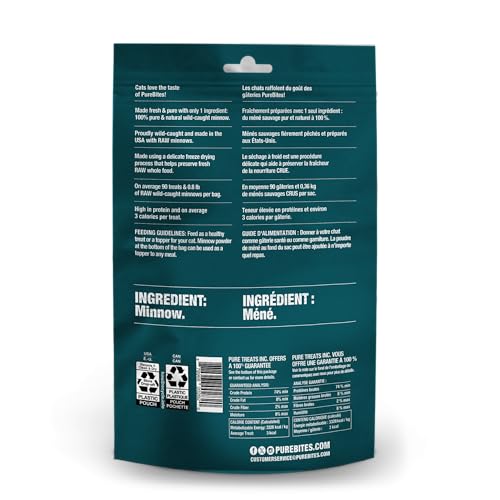 Made fresh & pure, using a delicate freeze drying process that helps preserve fresh RAW whole food; with 0.8lb of RAW minnow and 90 treats per 2.3oz bag, our bags are packed with more protein and nutrients