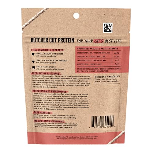FREEZE-DRIED RAW CHICKEN GIBLETS CAT TREAT: Vital Essentials Freeze Dried Cat Treats pack more protein than industry standard into every bite to deliver the peak vitality your dog deserves. Our natural freeze-dried raw cat treats are made from responsibly sourced, premium butcher cut chicken giblets.