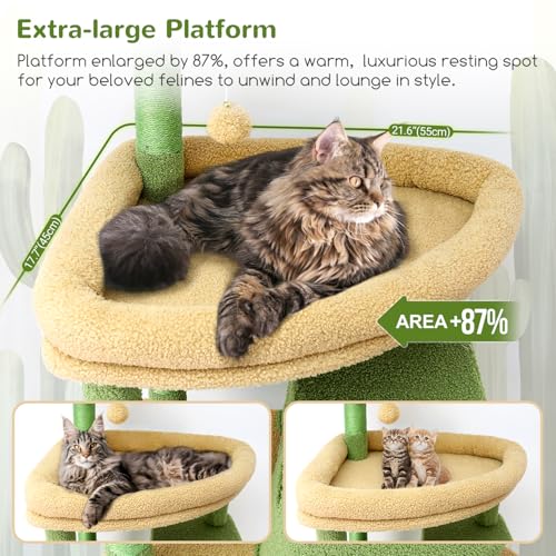 Globlazer Cactus Giant Cat Tree, 83 inch Cat Tree for Indoor Cats Large Adult, XXL Cat Tower with 9 Scratching Posts for 20lb+ Heavy Duty Large Adult Cats, F83, Green