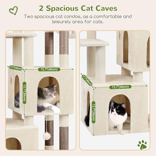 COMPREHENSIVE DESIGN – The 61-inch cat tree is crafted to cater to the diverse needs of large adult cats. With multiple levels and features, offers a vertical space for climbing, lounging platforms for relaxation, and interactive toys