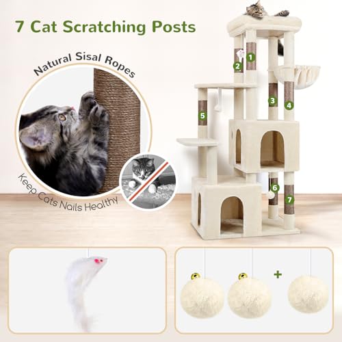 Globlazer Cat Tower for Indoor Cats, Heavy Duty Cat Trees for Large Cats Adult Big Cats Maine Coon Cat Tree Tower with Scratching Post, Extra Large Top Perch, Cat Condos, F61, Beige, 61inch