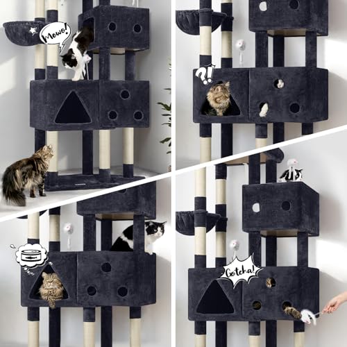 Globlazer Extra Large Cat Tower, 81-inch Tall Cat Tree for Big Cats 20 lbs, XXL Heavy Duty Cat Scratching Tower for Indoor Adult Cats with 3 Cat Condos, 8 Scratching Posts, F81, Dark Grey