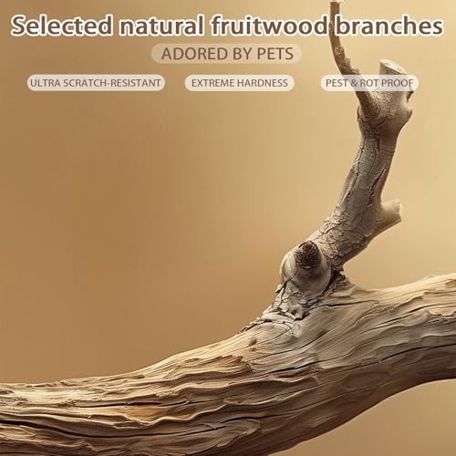🌳Natural Fruitwood Cat Tree · By CAMTTIR Each piece of wood comes straight from nature. CAMTTIR’s cat tree is crafted from high-density, high-hardness pear wood, which resists deformation and ensures long-term durability. Since every branch is sourced directly from real fruit trees, each one is unique in shape, giving the product a natural and artistic touch.