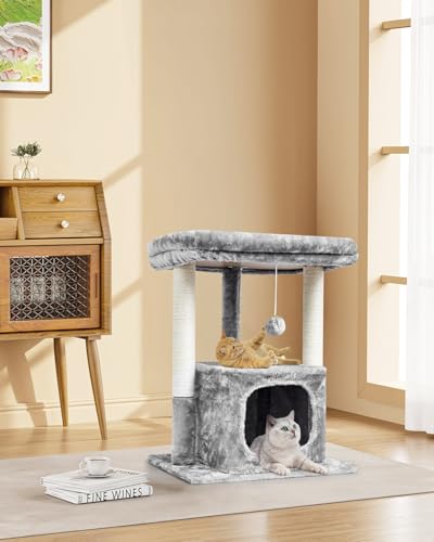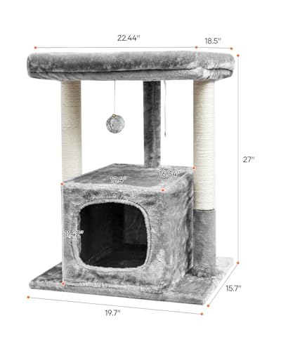 SYANDLVY 27IN Cat Tree for Indoor Cats Large Adult, Modern Activity Tower with Scratching Posts, Condo with Plush Perch, Climbing Stand with Spring Ball for Play, Grey