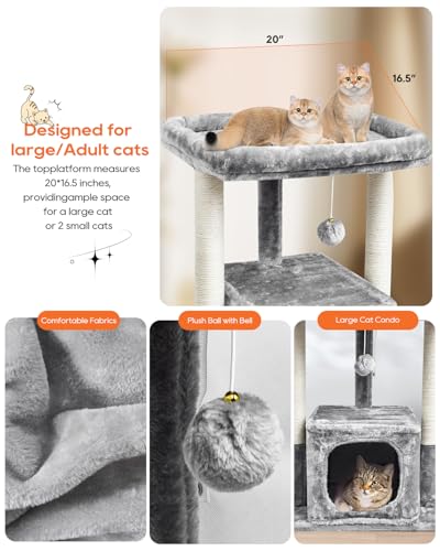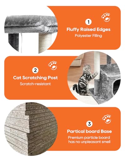 [EASY TO ASSEMBLE] This cat tower easy to put together with detailed graphic instructions. Overall dimension – 19.7” L x 15.7” W x 27”. This cat play tree in classic grey will decor your room as a piece of modern cat furniture