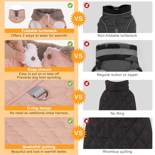 BEAUTYZOO Winter Dog Coat with Harness Built in, Warm Dog Puffer Jacket Vest Padded Fleece Cold Weather Coats Windproof Waterproof Snow Jackets Clothes for Small Medium Puppy,Pink S
