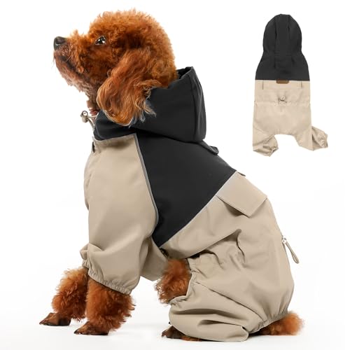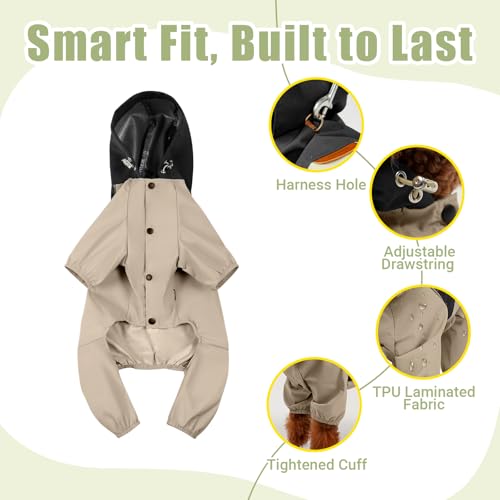 Dog Raincoat, Waterproof Dog Rain Jacket, Adjustable Rain Coat with Leash Hole and Reflective Stripe for Small Medium Dogs, Durable Windproof Puppy Clothes Black-Khaki S