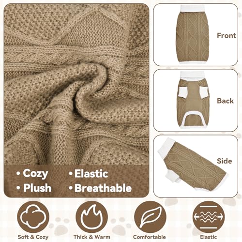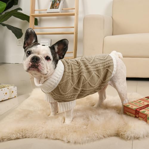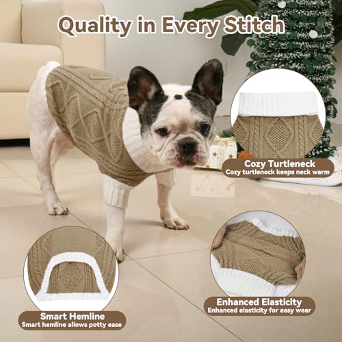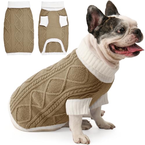 Dog Sweater for Medium Dogs Argyle Cable Knit Turtleneck Pullover Winter Clothes for Boys Girls Stretch French Bulldog Dachshund Corgi Pug Beagle Christmas Pet (M, Brown)