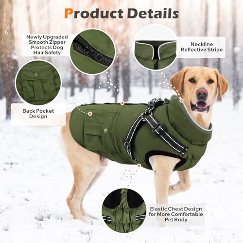Dog Winter Coat with Harness Built-in | Waterproof Dog Jacket with Zipper & Fleece Lining | Reflective Cold Weather Coat for Small Medium Large Dogs