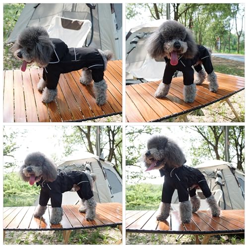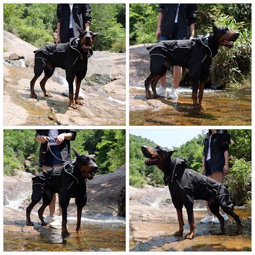 LOVELONGLONG Waterproof Dog Raincoat with Removable Hood – Outdoor Full Body Dog Jacket, Windproof Snowproof Shell Suit – All Season Pet Rain Gear Black 4XL