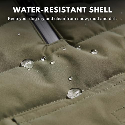 Spark Paws Dog Winter Jacket, Water-Resistant Coat, Warm Reflective Windproof Fleece-Interior, for Medium and Large Dogs – Olive – L